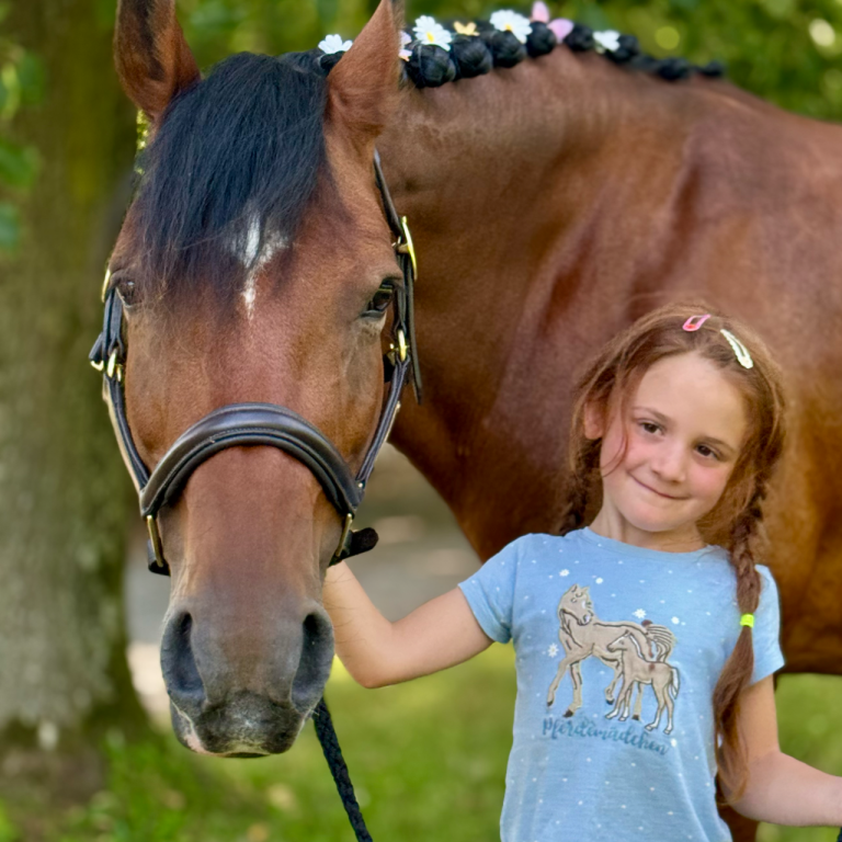 Ihre ruhige Art und ihr liebevoller Umgang machen sie zu einer wertvollen Begleiterin für Kinder und Ponys.