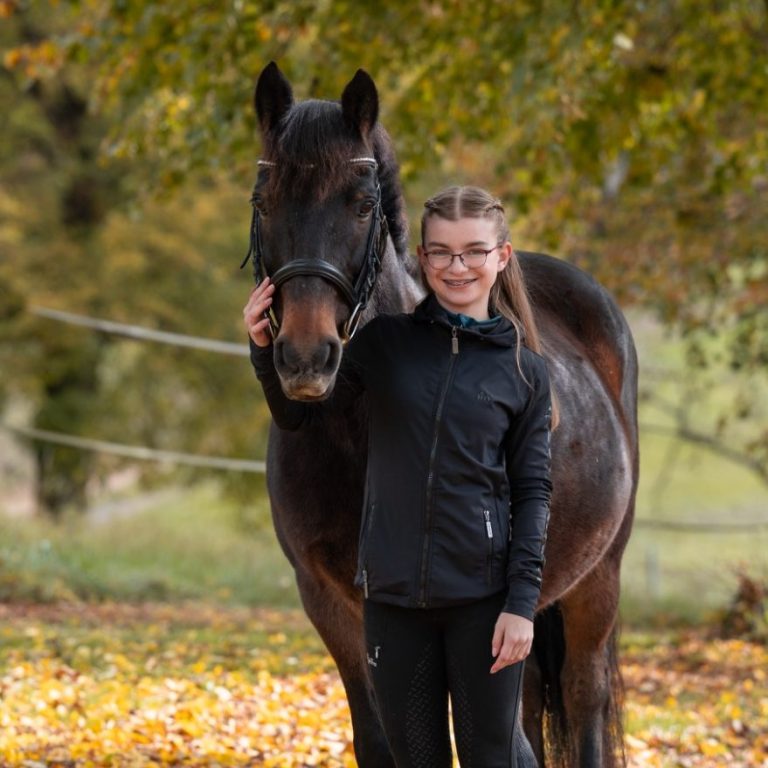 Jonna ist seit 2021 Reitschülerin von Lisa-Marie und seit 2025 Reitbeteiligung von Billy.